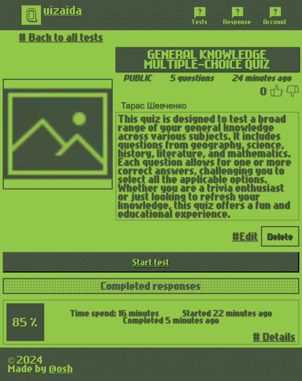 Website for quiz tests